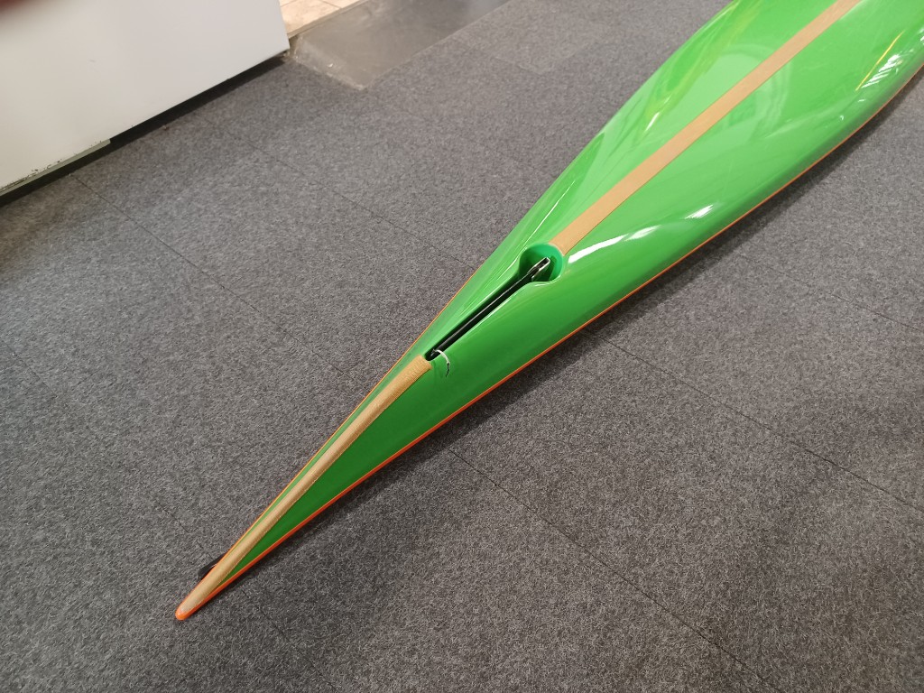 Sonderaustattung: verstärkter Süllrand, 30 mm Aramid Außennaht, alle Schottwände laminiert, 150er Deckel mit dritter Schottwand hinter dem Cockpit, Kielstreifen Aramid natur außen, Kompass Silva 70 P