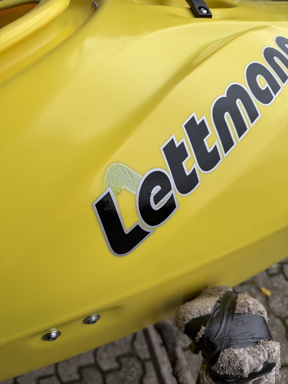 Bei dieser fröhlich gelben Machete ist der Aufkleber vorne rechts beschädigt. Damit ist sie natürlich uneingeschränkt WW-tauglich, aber du bekommst einen extra Preisnachlass.