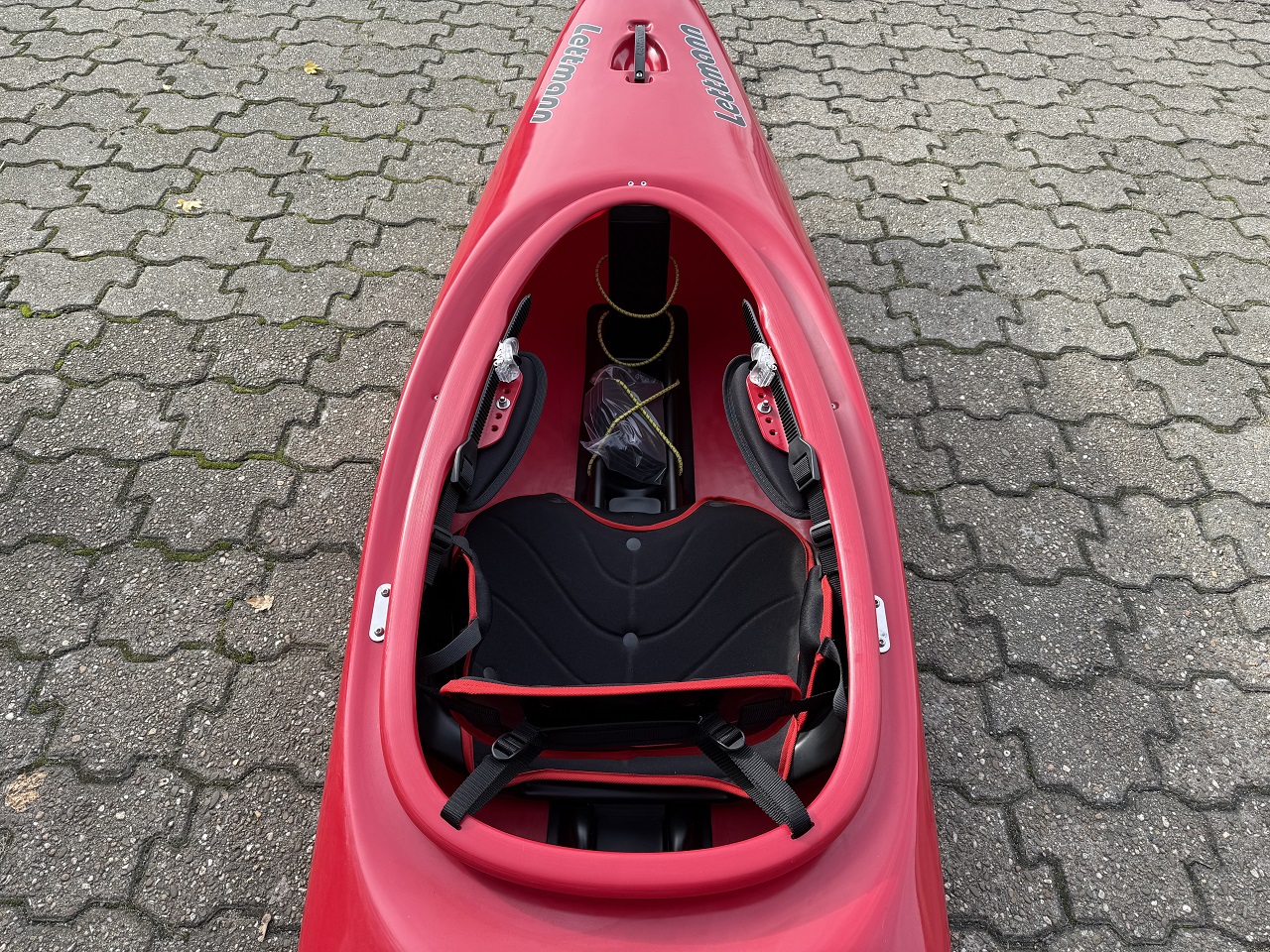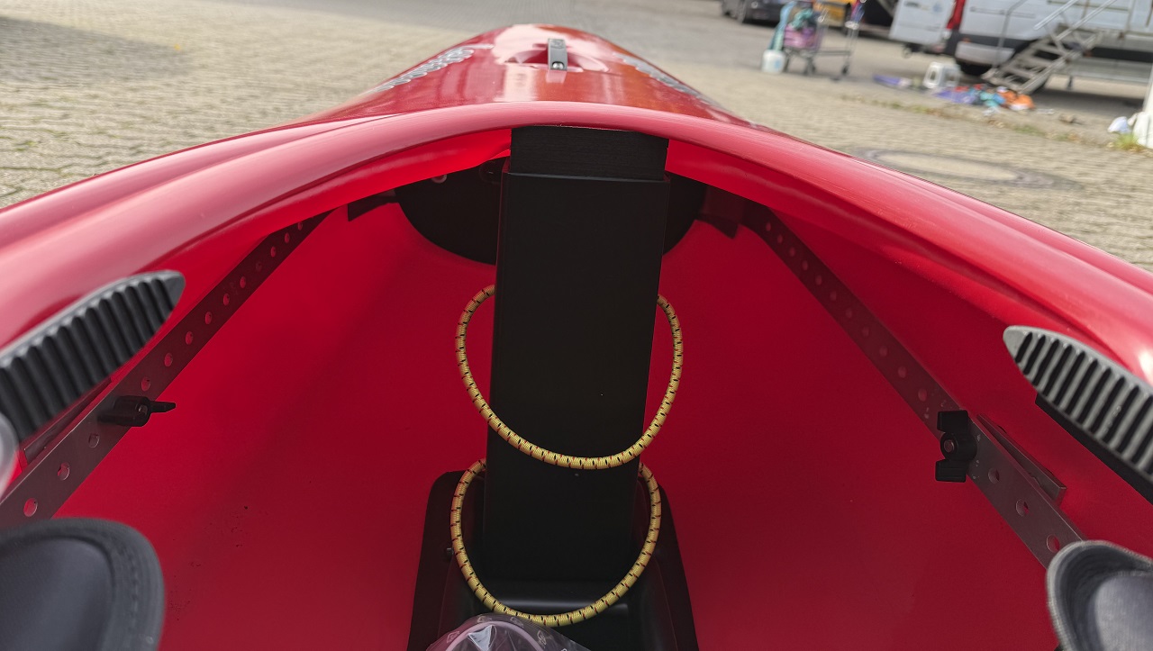 Ausnahmsweise haben wir ihm außerdem dünne Oberschenkelhalter eingebaut, statt der sonst bei unseren WW-Booten üblichen dicken Polster.