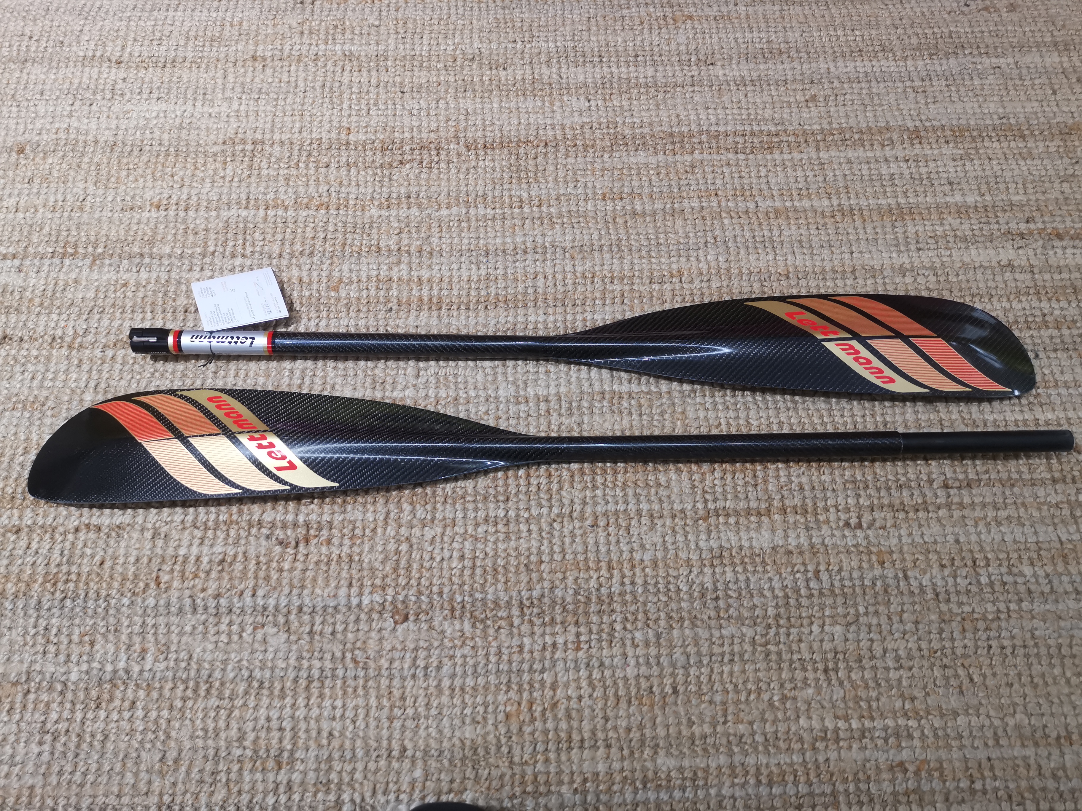 Dieses Liberty S mit Varioteilung II. Wahl, hier sind die Blätter zerkratzt und Epoxyschaum tritt an den Blattflächen aus. Durch diese lediglich optischen Mängel kannst du das Paddel günstiger dein Eigen nennen.