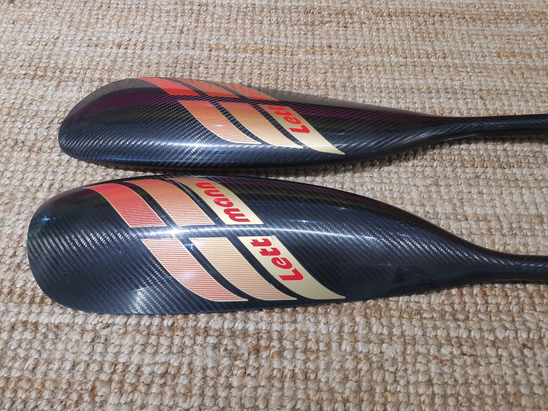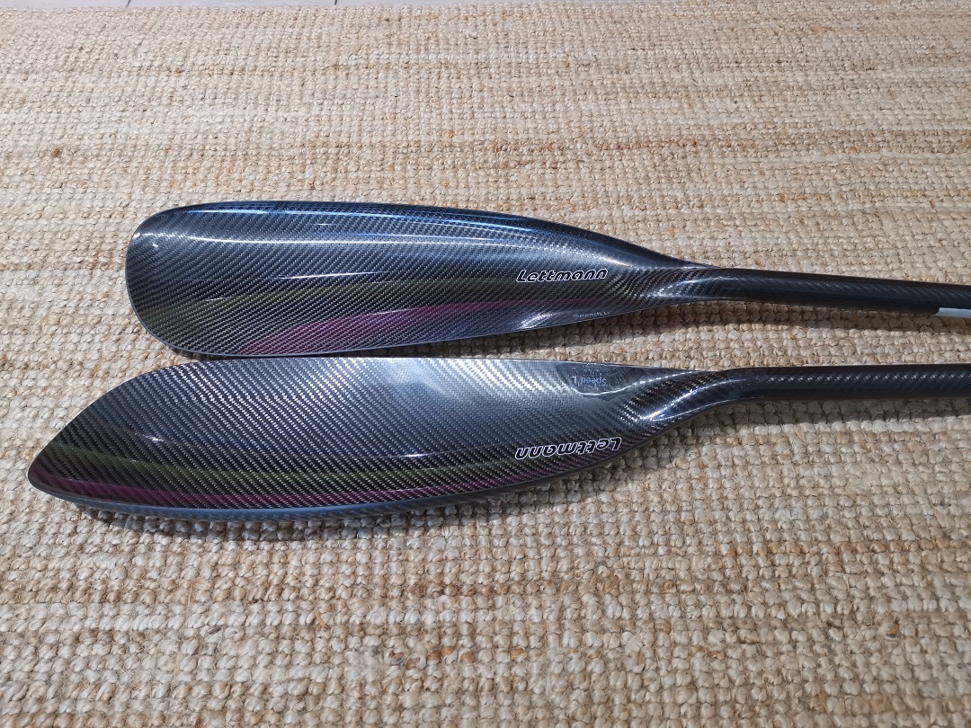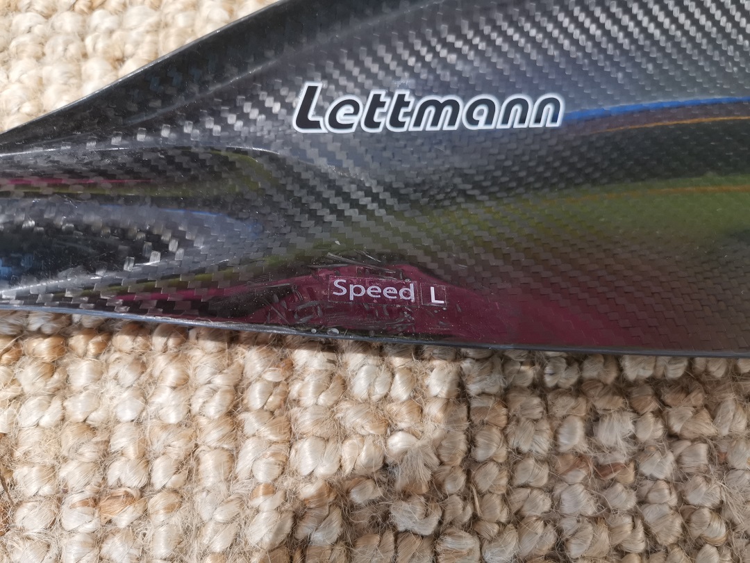 Das Speed L war bereits im Einsatz, auf der Rechten Blattseite musste ein Bruch repariert werden. Daher gibt es das Paddel zum Sonderpreis.